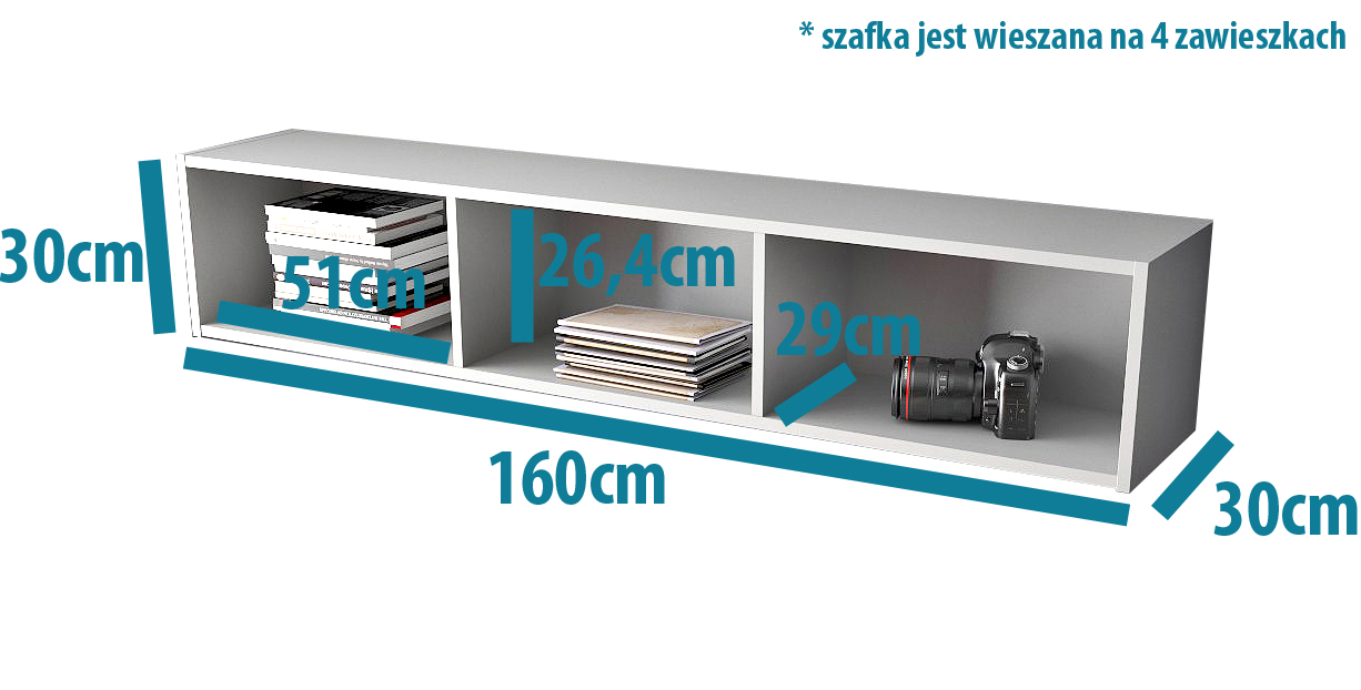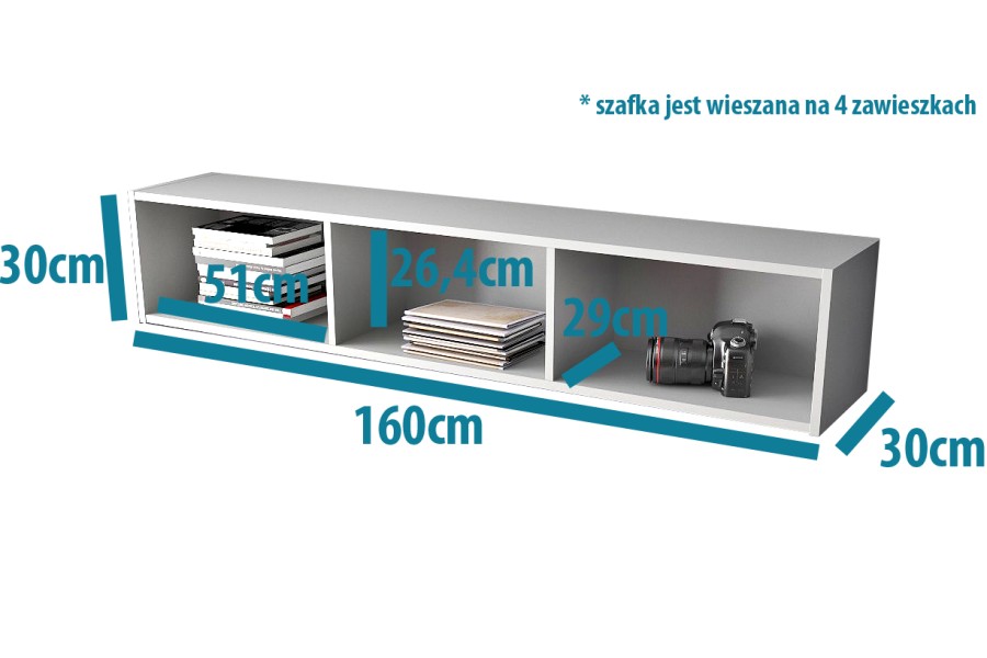 KWADRO szafka wisząca otwarta 160cm pozioma