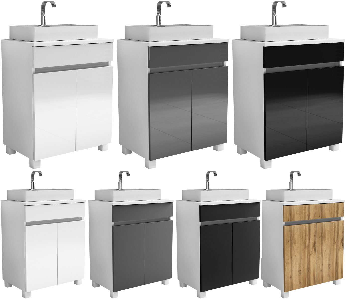 drzwiczki standardowe: biały połysk, czarny połysk, szary połysk, biały mat, szary mat, czarny mat, dąb wotan (18mm)