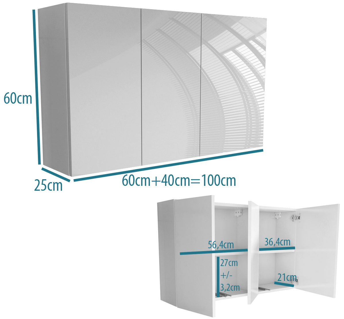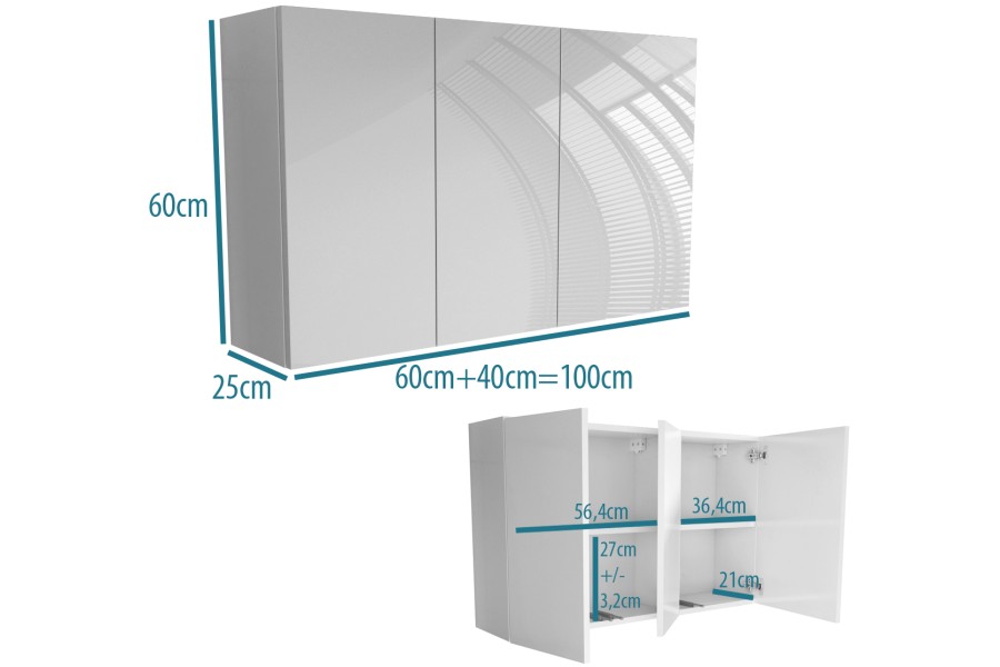 MILA wisząca szafki łazienkowe 60 + 40 = 100cm